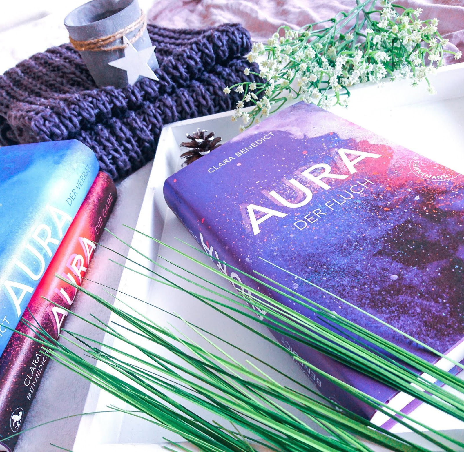 Es bleibt auch bei den alten Charakter und daher blieben mir alle symphatisch. Valentin wurde mir sogar ein ticken mehr symphatischer als vorher. Nachdem Raphael Hannah immer mehr erdrückt, kommt Valentin ihr näher. Ich muss auch dazu sagen, dass das Tempo der Handlungen etwas zurück geschraubt waren und daher auch etwas ruhe in die Spannung einkehrt. Alles verläuft verständlich und hält einen in den Bann. Das Finale dieser Geschichte war überhaupt das Highlight. Dabei gibt es einige Momente, an denen ich sogar geschockt war und die Luft anhalten musste. Das Ende war aufjedenfall eine mutige Idee von Clara Benedict, die sie auch grandios umgesetzt hat. Dieser Teil hat wirklich die beiden anderen Teile getopt, obwohl ich allgemein finde, das die Reihe wirklich gut umgesetzt wurde und die Idee für mich sehr erfrischend war. Am liebsten würde ich ja noch ewig weiterlesen und gar nicht mehr damit aufhören. Ich kann die Trilogie „Aura“ wirklich nur weiterempfehlen, für die die gerne unterhaltsame, schokierende, spannende Jugend Fantasybücher lesen. Obwohl ich sagen muss, das es ja nicht wirklich nur für Jugendliche ist.